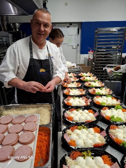Als ik alles heb ingevoerd, plaats ik de bestelling voor de boodschappen online. Ook controleer ik de bestellingen bij de bakker en de groenteboer. Daarna maak ik een voorbereidingslijst waar ik per dag aangeef wat er gedaan moet worden. We bereiden alles vers voor de beste smaakkwaliteit. Vervolgens check ik de HACCP controles. Op vrijdag maken we de keuken altijd extra grondig schoon en daar help ik bij, want ik hou van een schone werkplek. We hebben sinds 3 jaar een nieuwe keuken met de modernste apparatuur, daar zijn we heel trots en zuinig op. Daarom plannen we iedere week een extra schoonmaakbeurt in. Dan zit deze drukke, maar gezellige werkweek er alweer op.”